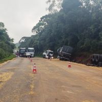 Motorista fica ferido após acidente em caixa de desaceleração na BR-277