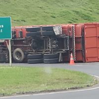 Motorista não sofreu ferimentos, conforme a PRF. Segundo os policiais, a carga era muito alta…