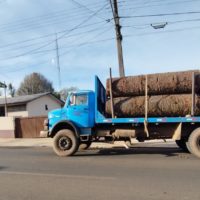 No total, 27 toras de araucária estavam sendo transportadas em caminhão Mercedes Benz abordado na…