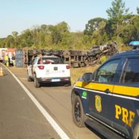 Caminhão tomba e deixa dois feridos na BR-277, em Palmeira