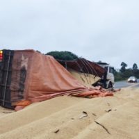 Rodovia ficou parcialmente interditada na manhã de hoje. Motorista do caminhão não se feriu Um…