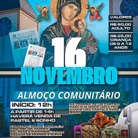 Almoço comunitário ocorre às 12 horas; Fichas estão sendo vendidas até o meio-dia de sábado…