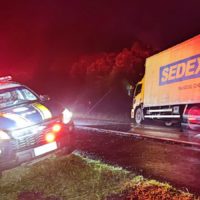 Pedestre foi atingido por um caminhão do SEDEX. Chovia forte no momento do atropelamento Um…