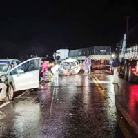 Uma mulher morreu em um acidente entre dois carros e um caminhão. Já um homem…