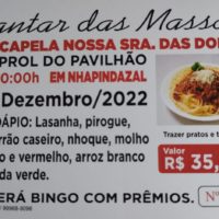 Jantar das Massas, sábado, dia 17, na Capela Nossa Senhora das Dores em Nhapindazal, em…