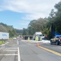Acidente entre dois caminhões ocorreu no limite entre os municípios de Prudentópolis e Irati, na…