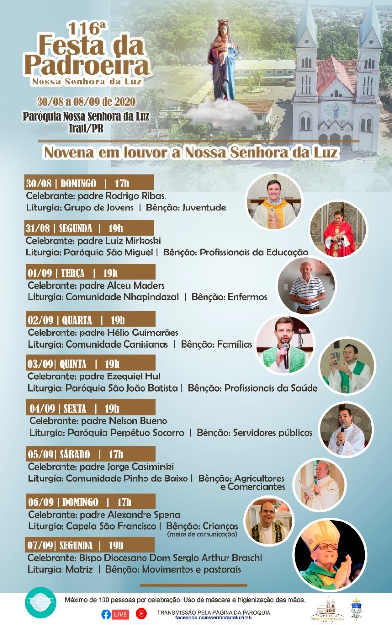 Nos últimos anos, a Paróquia Nossa Senhora da Luz retomou as comemorações do dia da Padroeira de Irati, celebrado em 8 de setembro. Porém, em 2020, por conta da pandemia do novo coronavírus, a celebração será feita de forma diferente.