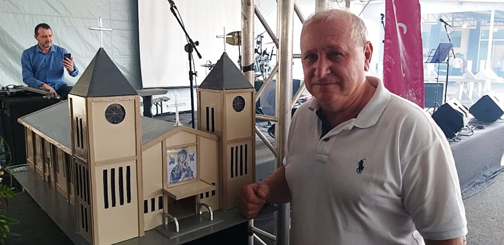 Caminhoneiro Marcos Aurélio Pedroso, o “Passarinho”, que também é artesão, fez duas maquetes para homenagear a igreja. Uma delas está em exposição na Casa da Cultura/Paulo Sava