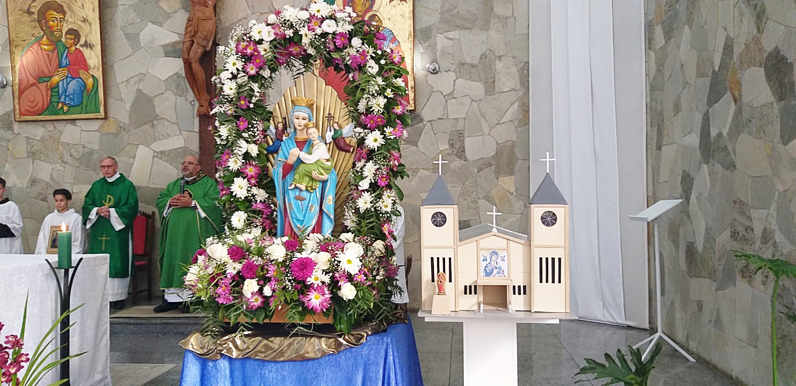 A Paróquia Nossa Senhora do Perpétuo Socorro de Irati foi presenteada com duas réplicas da igreja matriz durante a festa de sua padroeira, realizada no último fim de semana. O caminhoneiro Marcos Aurélio Pedroso, conhecido como “Passarinho”, também é artesão e foi quem fez as duas maquetes que ficaram em exposição na igreja durante a festa. Uma delas foi leiloada, a outra está em exposição na Casa da Cultura.