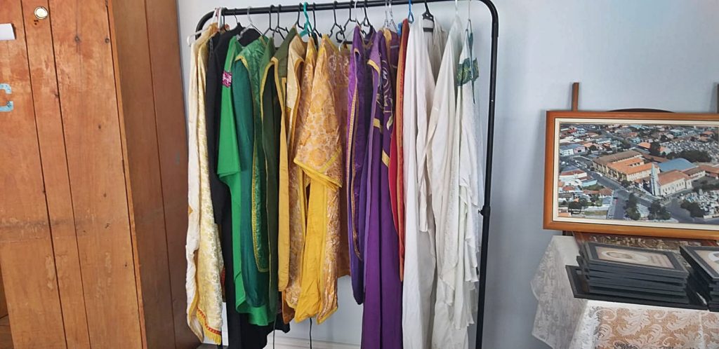 “Esses materiais são alguns que foram resgatados e estão sendo cuidados para serem expostos aqui e o pessoal ver como eram feitas as celebrações e as vestes dos sacerdotes, que eram muito diferentes das de hoje. Teremos também toda a história dos párocos, dos padres antigos que passaram. Então, você poderá lembrar do padre que te batizou aqui. Quem tiver uma idade de 60 ou 70 anos, poderá lembrar disso. Teremos também várias imagens de autores, artistas e pintores que estamos tentando resgatar”, comentou.
