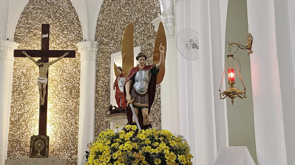 “Podemos pensar neste estudo dos anjos, os três grandes arcanjos, São Gabriel, São Miguel e São Rafael, que são celebrados no dia 29. Miguel é aquele que defende os filhos de Deus na fé, cuida e protege, é um protetor. Quem como Deus está escrito no escudo de São Miguel. Gabriel é aquele que é a voz do Senhor, é o anjo que anuncia o nascimento de Jesus a Maria. Rafael é aquele que cura, Deus cura. Por isso, temos esta devoção e a nossa Paróquia é muito participativa porque não tem só devotos de São Miguel aqui, mas muitas pessoas da cidade e de fora vêm no dia 29 para rezar e agradecer a São Miguel nesta grande festa”, frisou.
