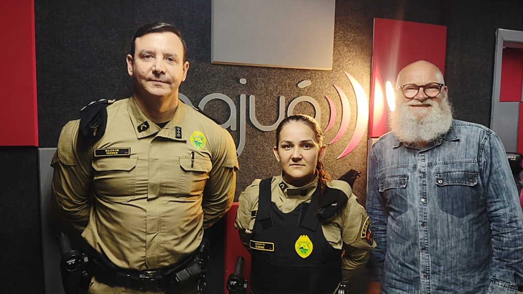 Na foto, o comandante da 8ª CIPM, Major Márcio Werner, a oficial de comunicação Rosiane Ribeiro e o empresário e advogado Airton Trento, idealizador. Foto: João Geraldo Mitz (Magoo)
