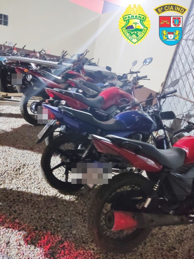 Cinco motocicletas foram apreendidas em Ipiranga na madrugada de quinta-feira, 8. Foto: PM/Divulgação