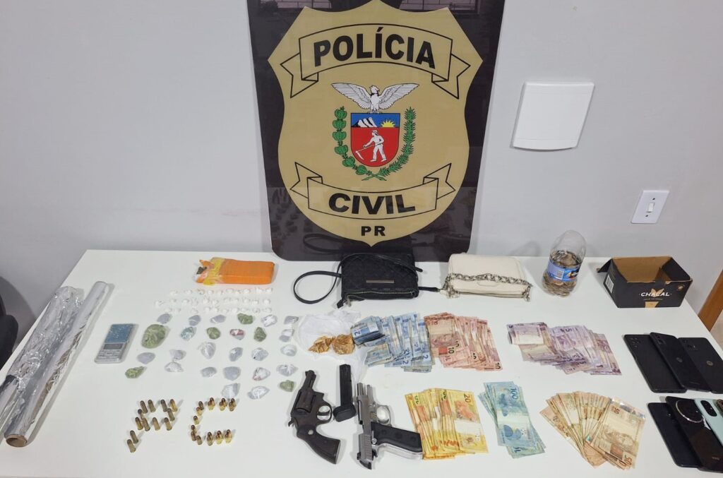 Policiais apreenderam armas, munições, drogas e dinheiro na residência de casal em Imbituva. Foto: PC/Divulgação