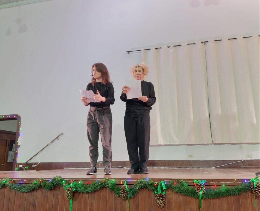 Alessandra Maestrini e Denise Stoklos durante apresentação no Centro Cultural Clube do Comércio no dia 23 de dezembro. Foto: Prefeitura de Irati
