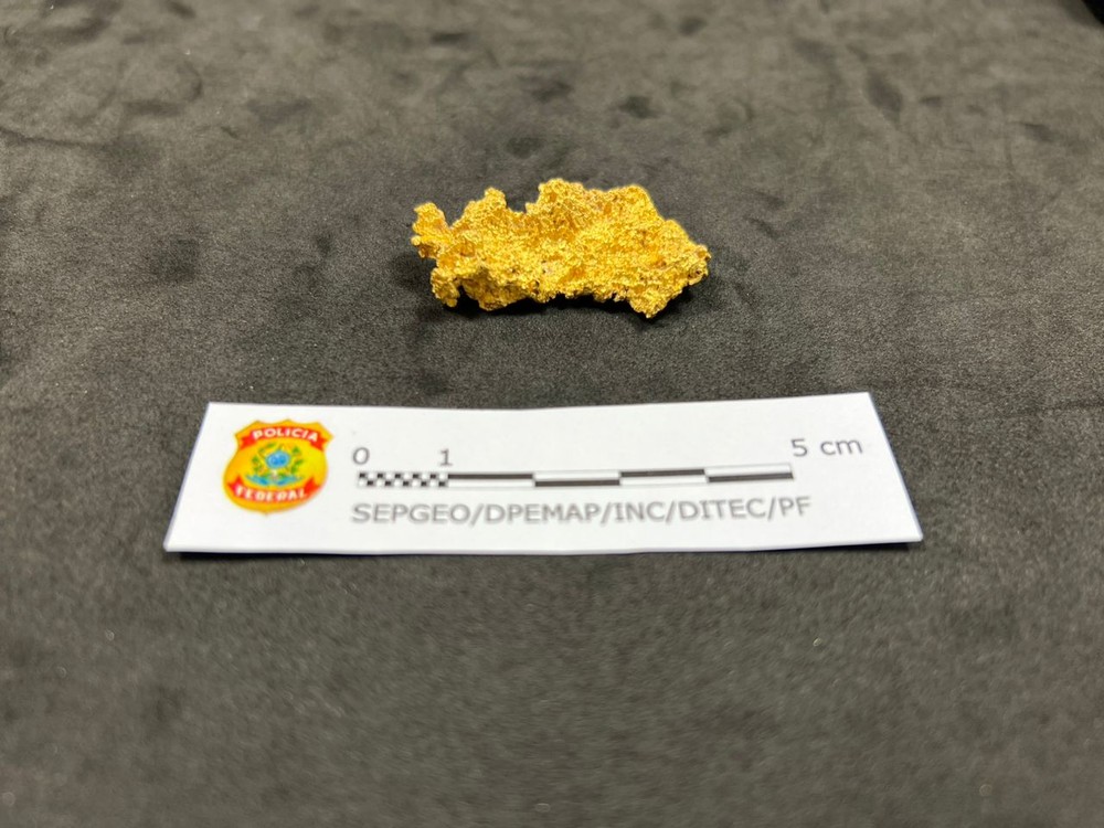 Conforme o laudo da Polícia Federal, a pepita pesa aproximadamente 39 gramas e possui um “teor aproximado de 91,76% de ouro contido”, com um valor estimado em cerca de R$ 11.687,71.