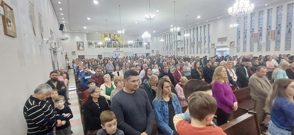 O padre também agradeceu a todas as pessoas que participaram, de uma forma ou de outra, da festa, seja com o trabalho, a doação de bolos para venda durante a festa, além de alimentos para o almoço e a produção de pasteis e sonhos, e outros brindes. “Foram muitos os bolos doados pelas famílias, pelas senhoras e também por alguns senhores. Agradeço de coração, na pessoa do Celso Volski, que doou o bolo maior da festa, a todos aqueles que doaram bolos para a festa. Agradeço também a todos que doaram outras prendas, brindes, foram muitos que as pessoas doam com carinho e amor, como gratidão e reconhecimento da presença, da intercessão e do amor de Nossa Senhora do Perpétuo Socorro em suas vidas, em sua missão”, comentou.