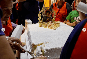 Em áudio encaminhado à nossa reportagem, o pároco, Padre José Nilson Santos, agradeceu ao empresário Celso Volski pela doação do bolo. “É um gesto dele que às vezes fica no silêncio, sem grandes alardes, mas a cada ano o Celso Volski doa o bolo da festa, e neste ano também o fez. Pelo tamanho do bolo, ali tem um custo considerável. Não é por isso, mas pelo carinho dele se dedicar todo ano ao cuidado com o bolo”, frisou.