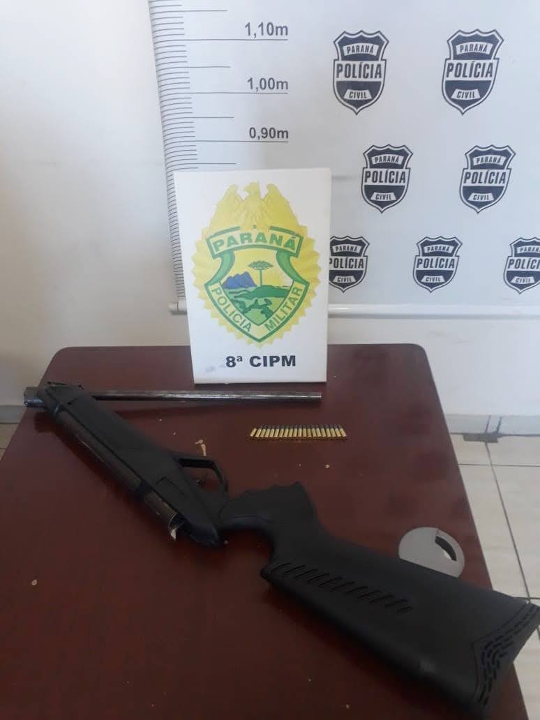 | Arma e munições foram apreendidas pela PM de Rebouças. Foto: PM/Divulgação |