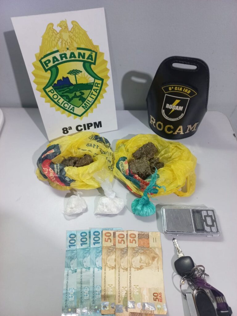 Já na residência foram localizados mais 50 gramas de cocaína, 78,2 gramas de maconha, uma balança de precisão e R$ 450 em dinheiro. O homem, o veículo e as drogas foram encaminhados para a Delegacia de Irati.