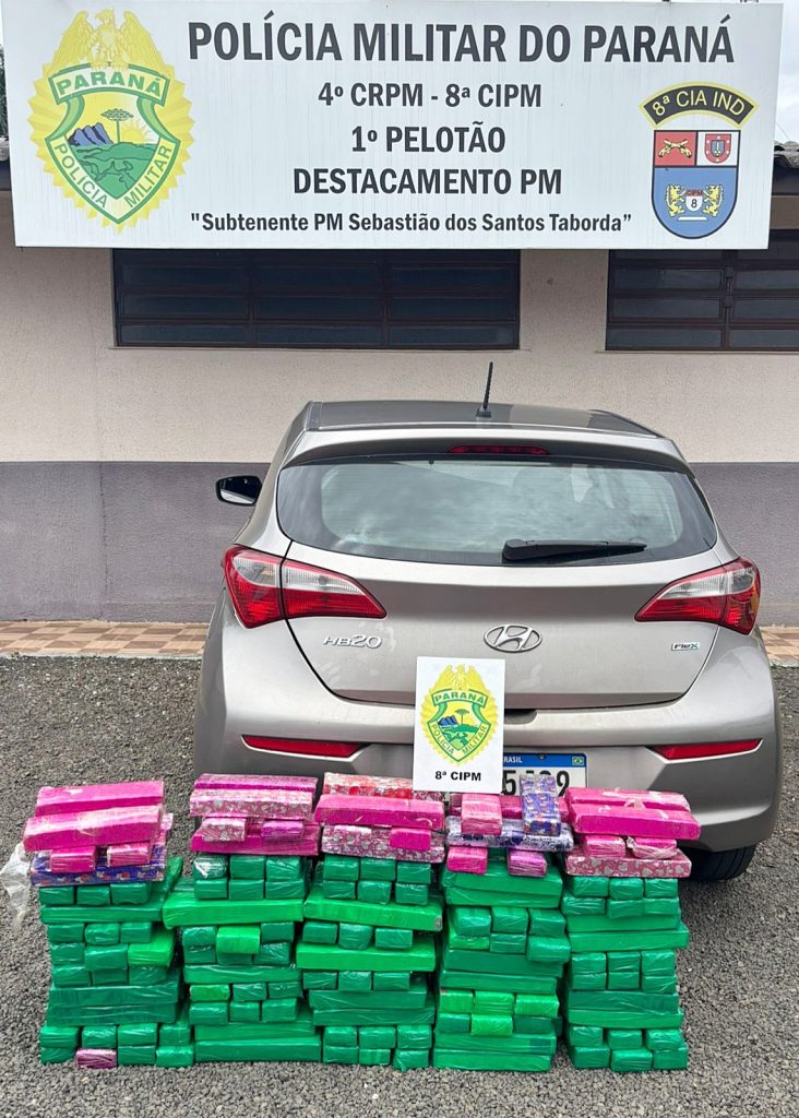 Por volta das 11 horas de sábado, 10, na localidade rural de Papagaios, em Inácio Martins, a equipe policial abordou um veículo Hyundai HB20, que chamou atenção por trafegar com a suspensão visivelmente baixa. Durante a aproximação, os policiais perceberam um forte odor de substância análoga à maconha.
