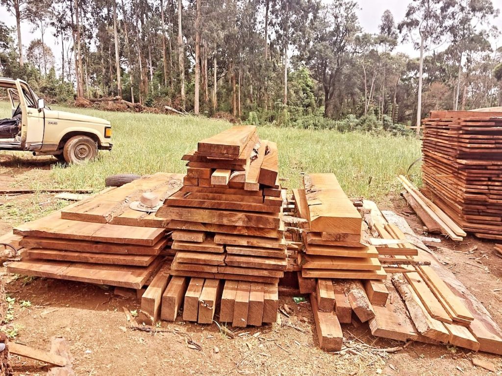 Madeiras serradas foram encontradas em propriedade na localidade de Gonçalves Junior, em Irati. Foto: PM/Divulgação