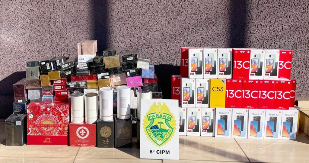 A Polícia Militar de Inácio Martins apreendeu 45 celulares e 106 frascos de perfumes importados irregularmente na tarde de sexta-feira. Os policiais realizavam uma operação bloqueio na rua Nair Bastos Druciaki, no bairro Curtume, quando abordaram um veículo Gol, que possuía dois ocupantes.