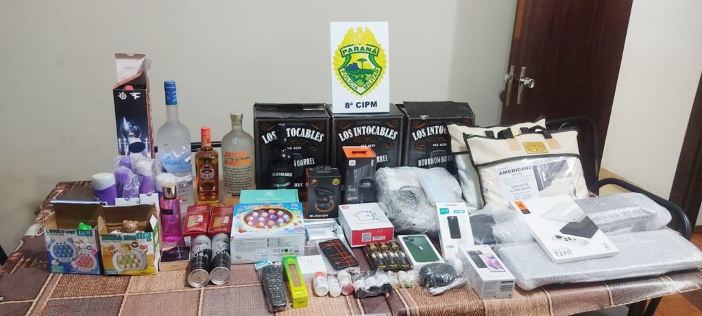 Produtos apreendidos pela PM de Irati durante abordagem realizada na PR-364, na noite de quinta-feira. Foto: PM/Divulgação