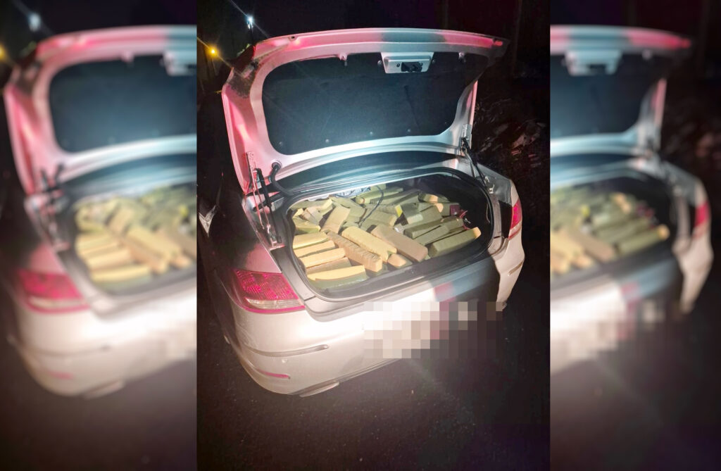A Polícia Militar localizou mais de 200 quilos de maconha em um veículo Peugeot 408, que estava com a suspensão traseira rebaixada, durante abordagem realizada na PR-364, na localidade de Rio Corrente, em Irati, na noite de domingo. O carro tinha três ocupantes, entre eles, um casal.