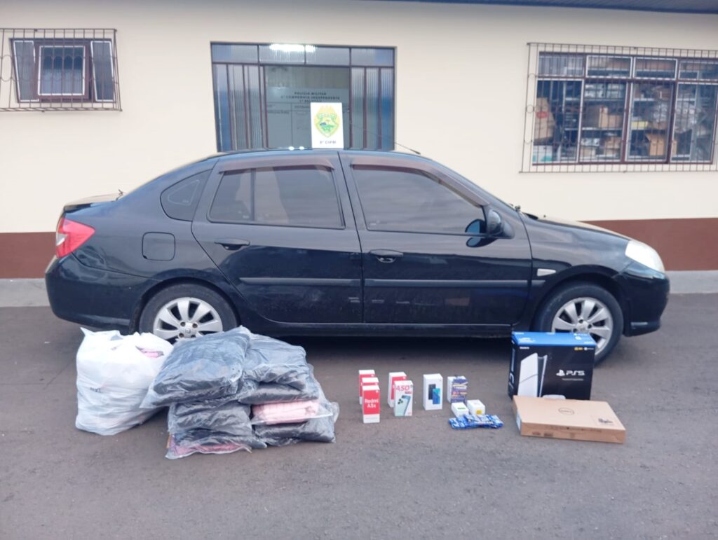 A Polícia Militar de Irati apreendeu um veículo que possuía mercadorias contrabandeadas do Paraguai. O carro foi abordado na Serra do Rio Bonito, na tarde de ontem. Os produtos estavam em sacolas no porta-malas e na parte traseira do carro.