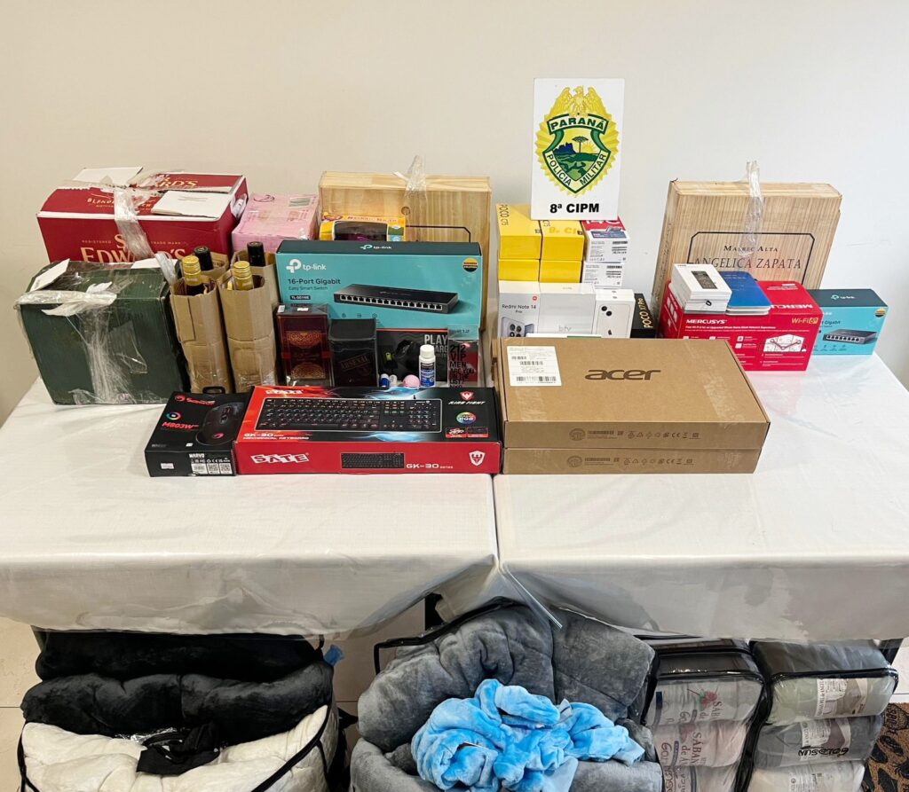 Produtos eletrônicos, celulares, bebidas, perfumes, cremes corporais, entre outros objetos foram apreendidos. Eles foram localizados em carros abordados na BR-277, em Irati
