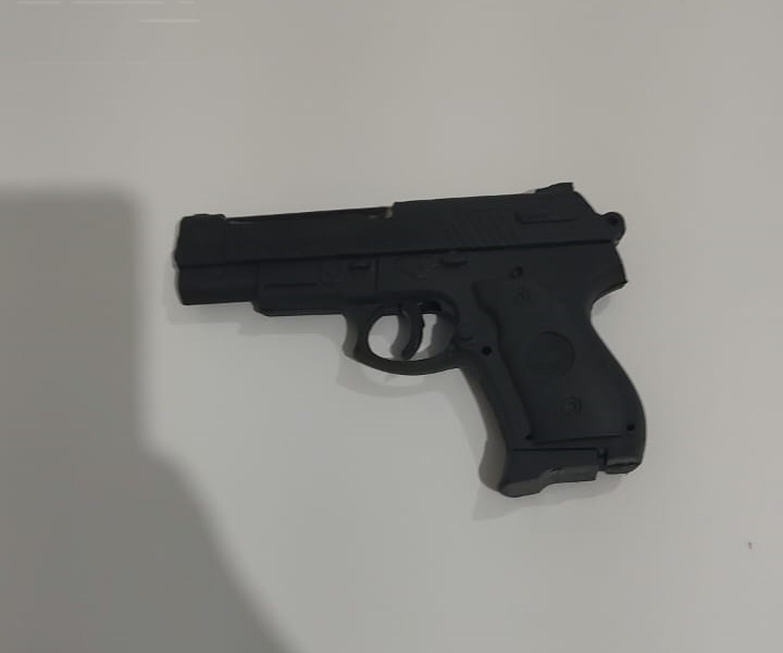 No momento que os policiais transitavam na rua, a mulher dispensou um objeto atrás do muro de uma residência. Os policiais constataram que o objeto era um simulacro de arma de fogo utilizado durante o roubo. Durante a abordagem, a mulher confirmou que foi a autora do roubo. Ela ainda disse que perdeu o celular roubado durante a fuga. A arma e a bicicleta apreendidas e a mulher que cometeu o roubo foram conduzidos para a Delegacia.