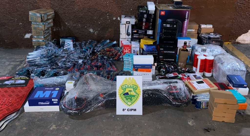 Foram apreendidos, 16 celulares, 287 ferramentas, dois relógios, três caixas de som, três tablets, peças para computador e material de pesca, sete fones de ouvido, um patinete elétrico e um drone. Segundo a PM, os produtos seriam levados para os estados de Santa Catarina e Rio Grande do Sul. O veículo e as mercadorias foram apreendidos. Já o motorista responderá pelo crime de descaminho.