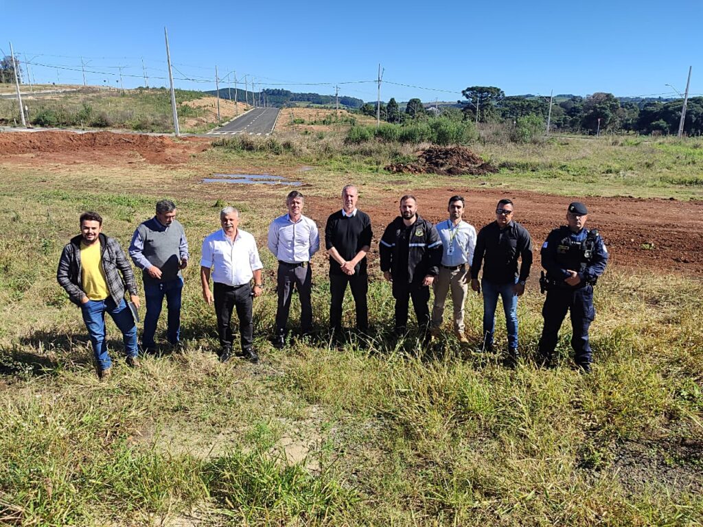 Os profissionais também vistoriaram alguns terrenos no município, juntamente com o prefeito Jorge Derbli, o secretário-geral da AMCESPAR, Vanderlei Kava, e dos secretários de Tecnologia, Inovação e Planejamento, Newton Ribas, e de Segurança Pública e Cidadania, Lee Jefferson Souza.