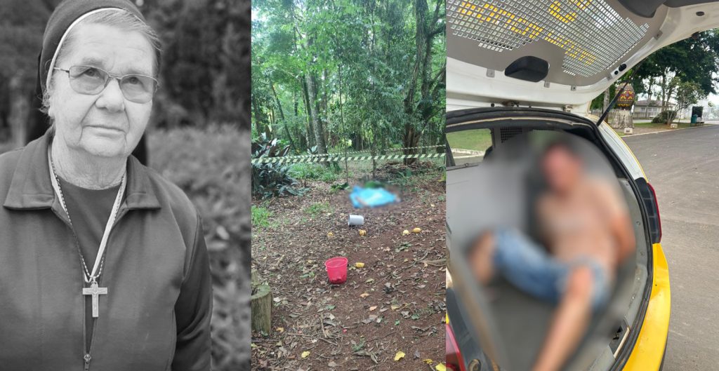 Vítima: Irmã Nadia Gavanski, de 82 anos. Imagens mostram momento da prisão do suspeito; veja abaixo. Imagens: Redes sociai