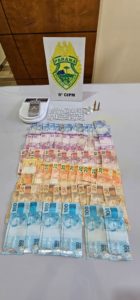 PM apreendeu drogas, munições, dinheiro e uma balança de precisão na tarde de ontem, 27, em Imbituva. Foto: Divulgação PM