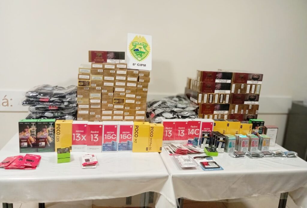 Mais de 200 frascos de perfume, 20 celulares e outros produtos de origem estrangeira foram apreendidos pela Polícia Militar na PR-364, na localidade de Góes Artigas, em Inácio Martins, no início da madrugada de domingo. Os objetos foram encontrados em um veículo Renault Kwid.