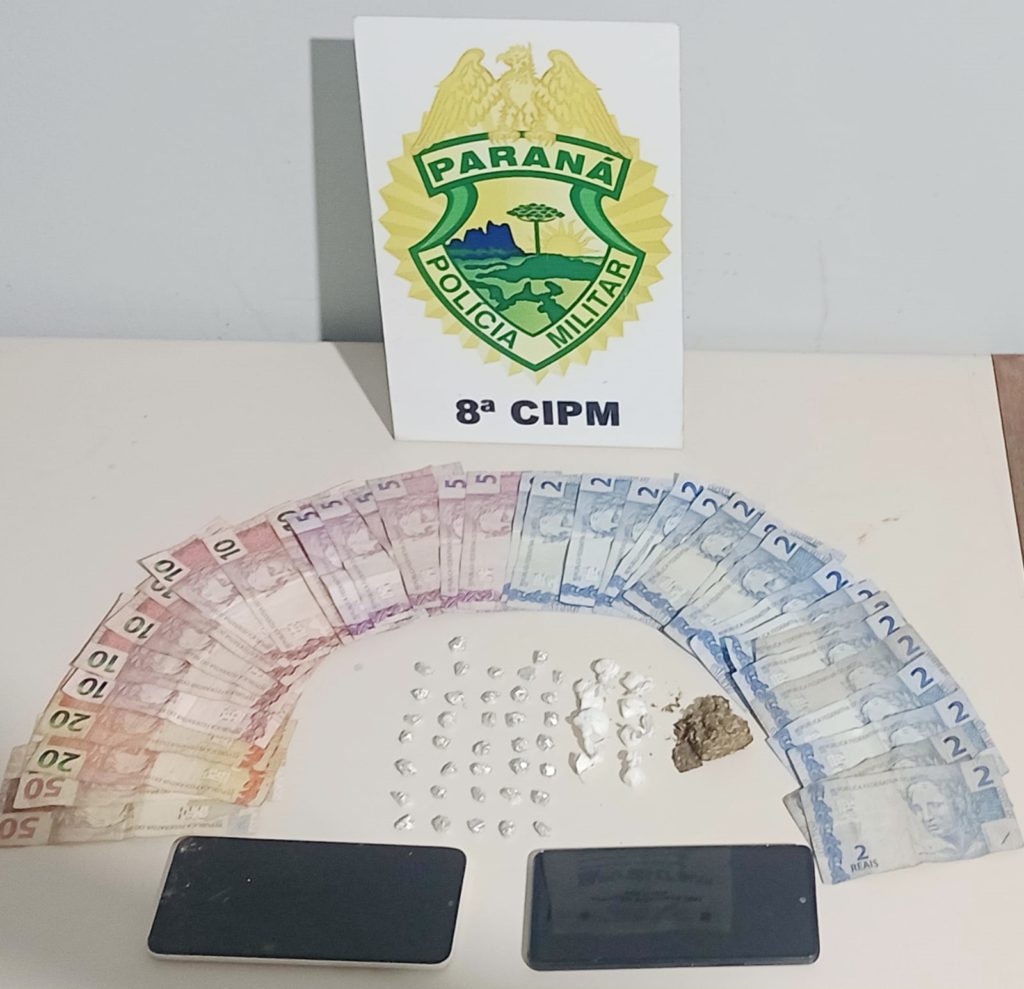 PM apreende cocaína, crack e maconha em Irati: Ainda em Irati, a PM apreendeu crack, cocaína e maconha. A equipe da Rotam realizava patrulhamento quando observou que havia duas pessoas em atitude suspeita próximo ao portão de uma casa conhecida como ponto de tráfico de drogas. Ao serem abordados, um homem e uma mulher correram para dentro do pátio da casa e jogaram dois pacotes plásticos no chão. Os policiais constataram que havia pedras de crack e buchas de cocaína nos pacotes dispensados.
