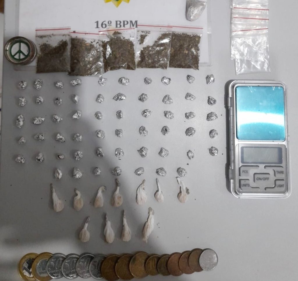 Durante a limpeza no quarto do rapaz, os policiais encontraram os entorpecentes escondidos no guarda-roupa. Foram apreendidas 68 pedras de crack, que estavam embaladas e prontas para a venda, além de 12 gramas e mais uma porção de crack e seis porções de maconha. Os policiais ainda apreenderam uma balança de precisão usada para pesar drogas, um dichavador e uma pequena quantia em dinheiro. Segundo a PM, o quarto onde foram encontradas as drogas era de uso exclusivo do adolescente.