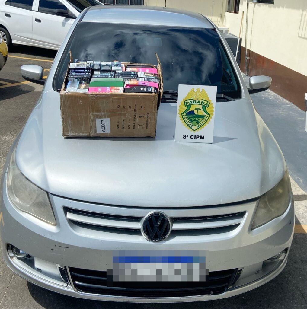 Na primeira situação, os policiais localizaram 236 unidades de cigarros eletrônicos em um carro. Já a segunda abordagem resultou na apreensão de vários produtos, como patinetes, celulares, perfumes, entre outros objetos