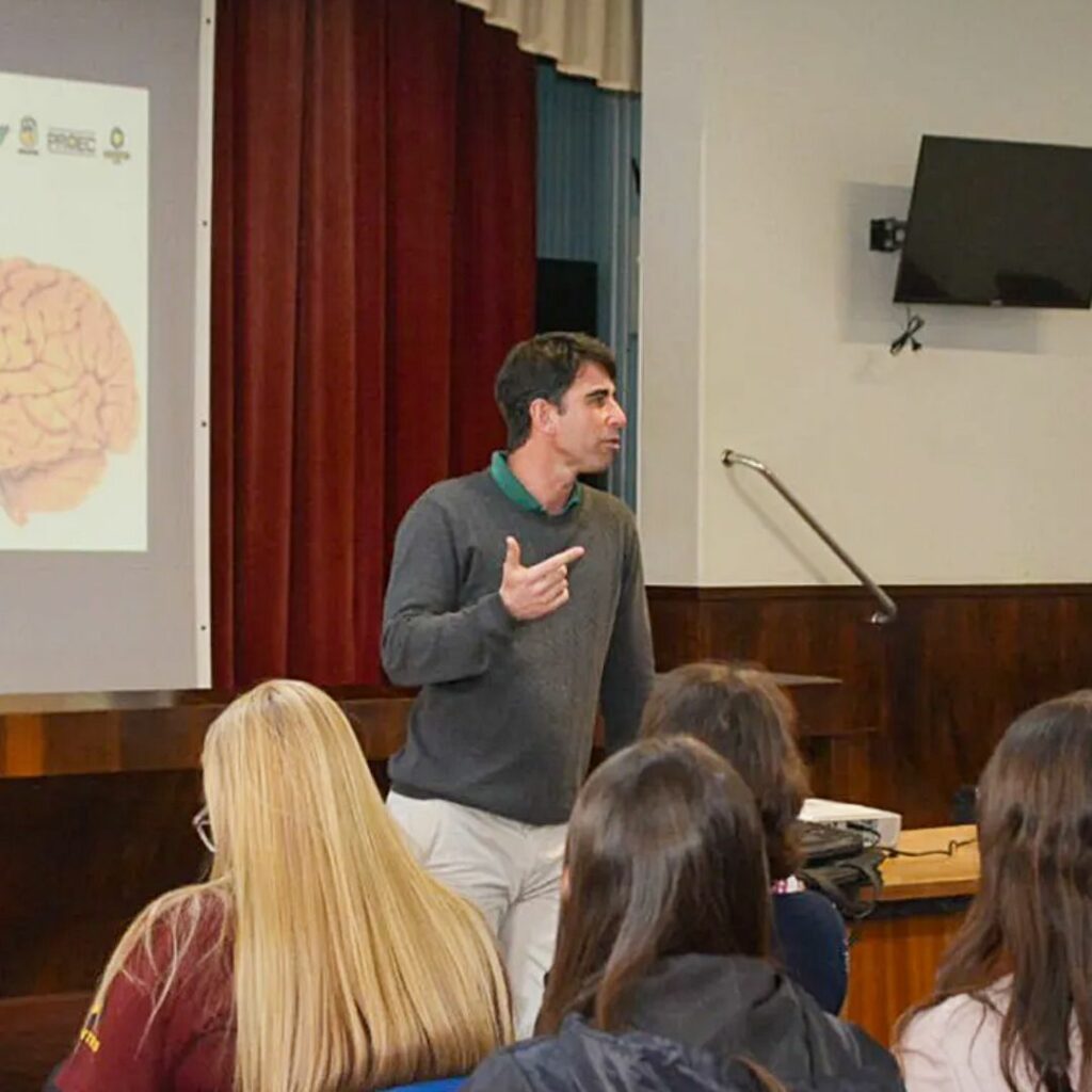 Professor Doutor Plínio Marco de Toni, do Departamento de Psicologia da Unicentro, durante palestra ministrada a estudantes dos aulões da Unicentro, que estão acontecendo no Colégio Estadual Cívico-Militar Duque de Caxias. Foto: Comunicação Unicentro
