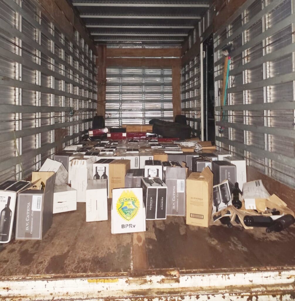 A Polícia Rodoviária Estadual (PRE) apreendeu 200 caixas de vinhos argentinos na PR-364, em Irati, na noite de ontem, por volta das 23 h. Os produtos foram encontrados em caminhão Mercedes Benz, com placas de Guarapuava, abordado no quilômetro 87 da rodovia.