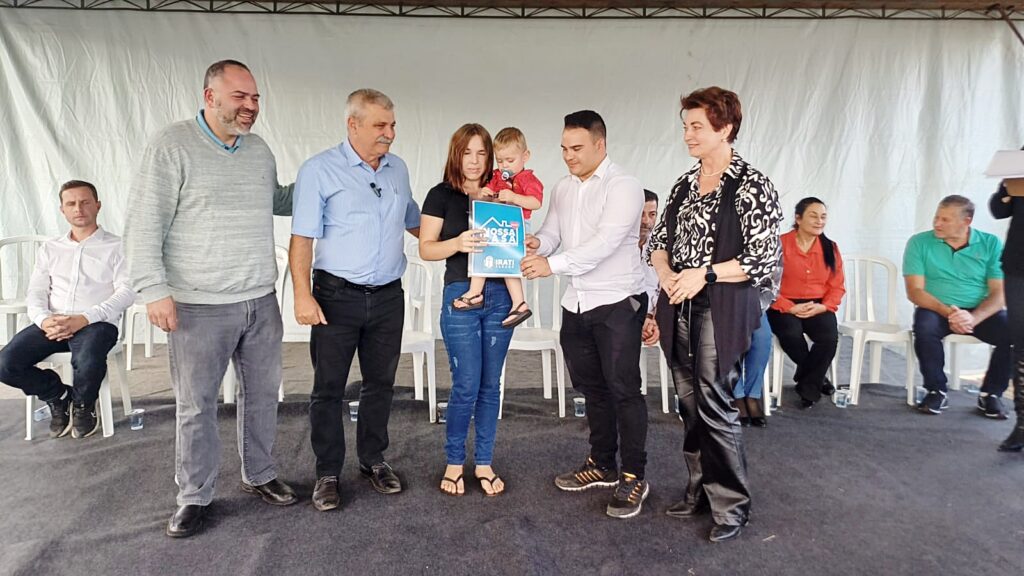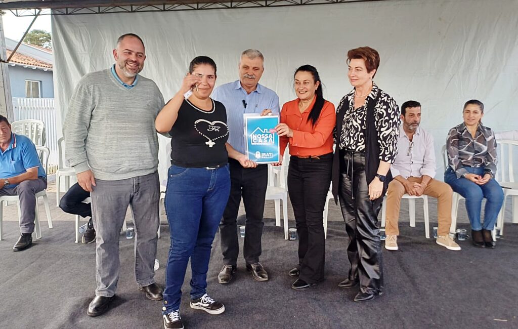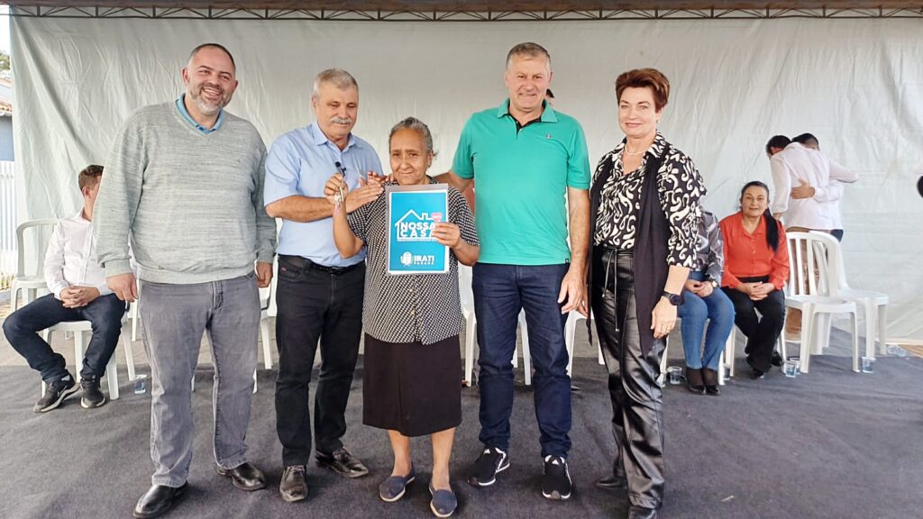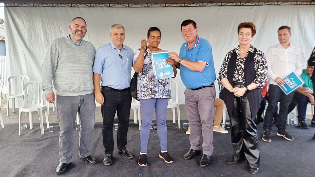 A Prefeitura de Irati entregou na tarde desta quarta-feira, 03, residências no conjunto Cartom 2. No total, 21 famílias foram beneficiadas com os imóveis, adquiridos pelo Executivo e entregues sem nenhum custo aos beneficiários, através do programa “Nossa Casa”. O prefeito Jorge Derbli, a vice-prefeita Ieda Waydzik e o deputado estadual Artagão Júnior acompanharam a entrega das chaves.