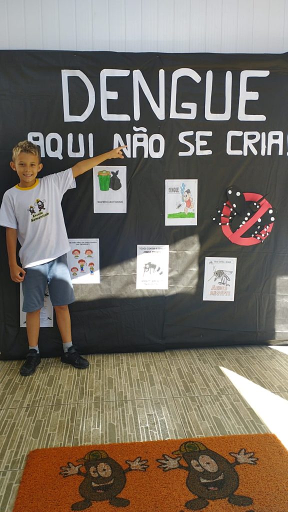Escolas e CMEIs do município – Nas escolas e CMEIs do município, foram feitas ações de limpeza nos pátios e de conscientização dos alunos sobre os riscos e a prevenção da dengue.