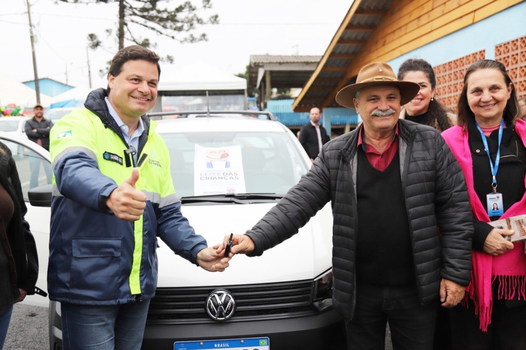 Segundo o secretário de Agropecuária, Abastecimento e Segurança Alimentar, Raimundo Gnatkowski (Mundio), o veículo Saveiro será utilizado para deslocamento até os pontos de entrega do leite. Mundio ressalta os benefícios do programa estadual. “Esse programa é ligado à Secretaria da Agricultura, o programa é mantido pelo governo do Estado, já é de gestões anteriores, mas ajuda muito o nosso agricultor, porque nós temos empresa aqui de Irati que entrega para o ‘Leite das Crianças’ e também ajuda as crianças lá na ponta que é justamente melhorar a alimentação delas”, afirma o secretário.