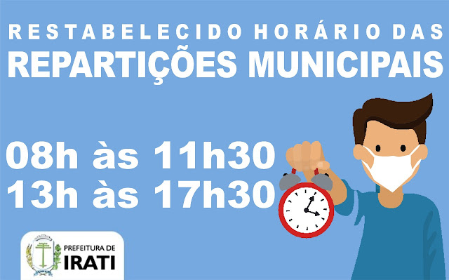 O prefeito de Irati, Jorge Derbli, assinou uma portaria determinando o horário de expediente das repartições públicas municipais entre 8 e 11h30 e das 13 às 17h30 a partir desta quarta-feira, 8. Entre os dias 17 de junho e 7 de julho, a prefeitura reduziu o horário de atendimento como medida para evitar o contágio de coronavírus.