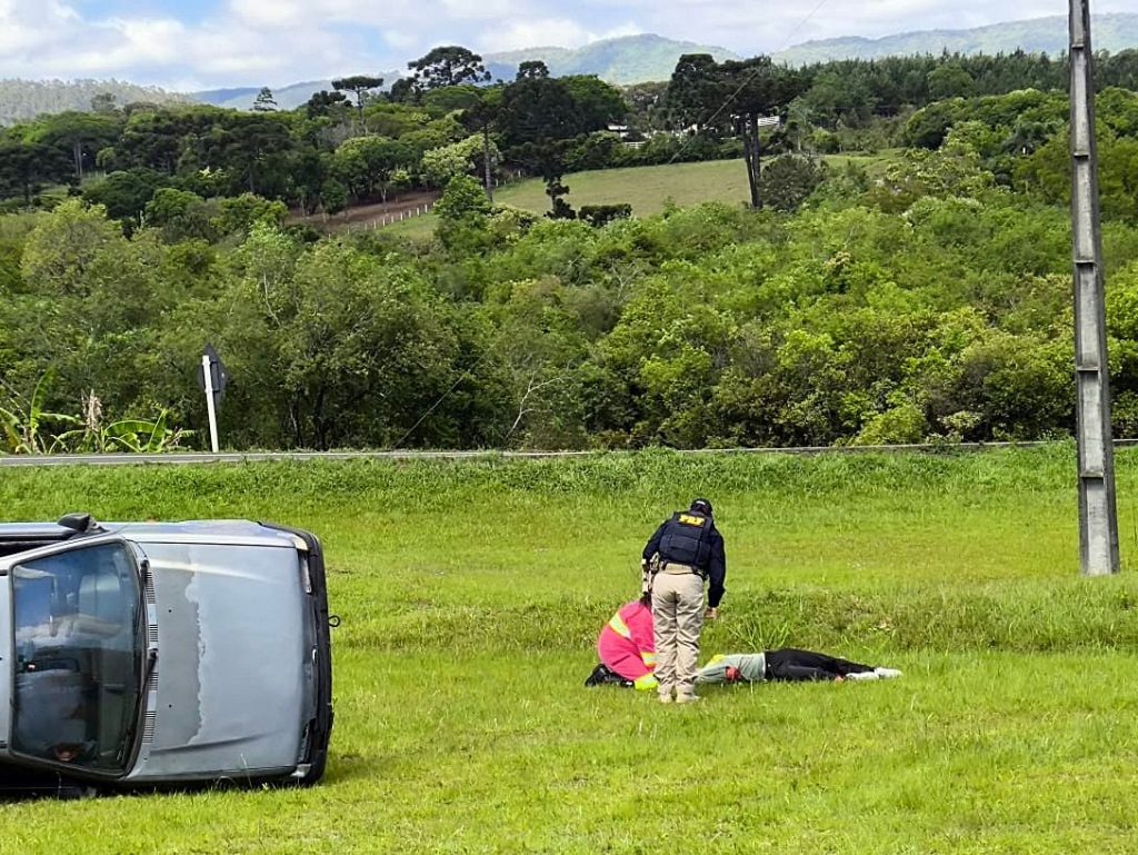 Ainda na manhã desta quarta-feira, a PRF participou de uma ação de simulação de acidente de trânsito, promovida em parceria com as concessionárias Via Araucária e EPR no trevo do Relógio, em Prudentópolis, em alusão à campanha Outubro Rosa.