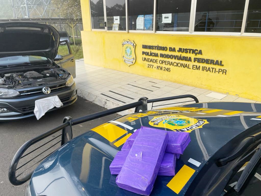 PRF apreendeu quatro quilos de cloridrato de cocaína BR-277, em Irati. Foto: PRF/Divulgação