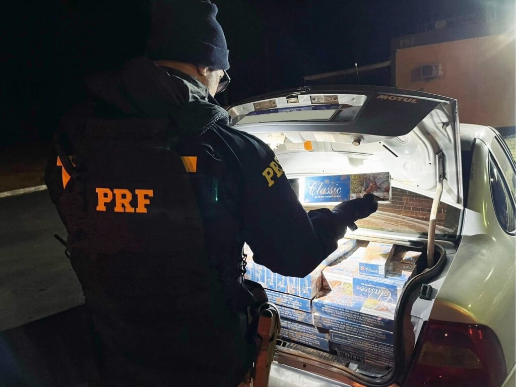 Os cigarros estavam no porta-malas e nos bancos traseiro e dianteiro do carro. A ocorrência foi repassada para a Receita Federal de Ponta Grossa.