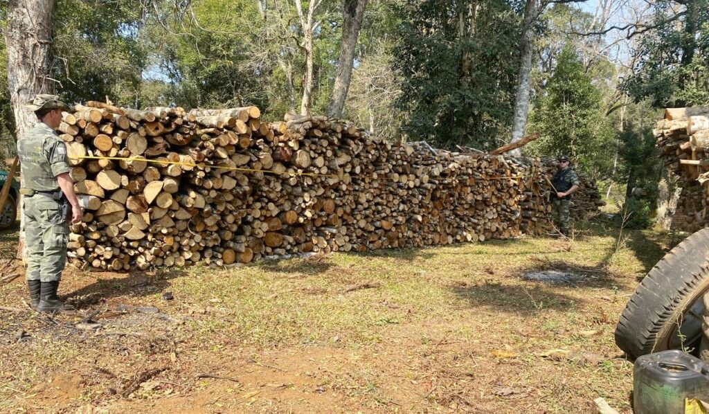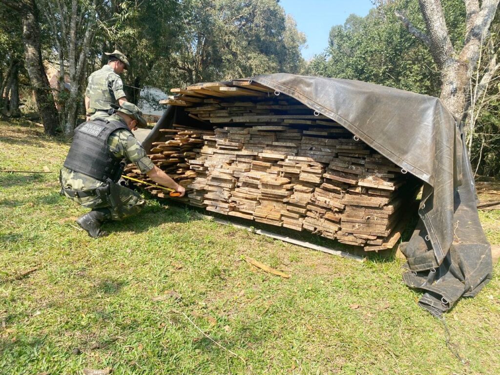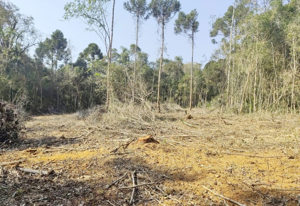Em outra ocorrência atendida na Colônia Adelaide, em Ipiranga, os policiais constataram o corte de vegetação nativa e roçada em uma área correspondente a 0,18 hectares. No local também foram cortados cinco pinheiros e uma imbuia. Essas espécies são ameaçadas de extinção.